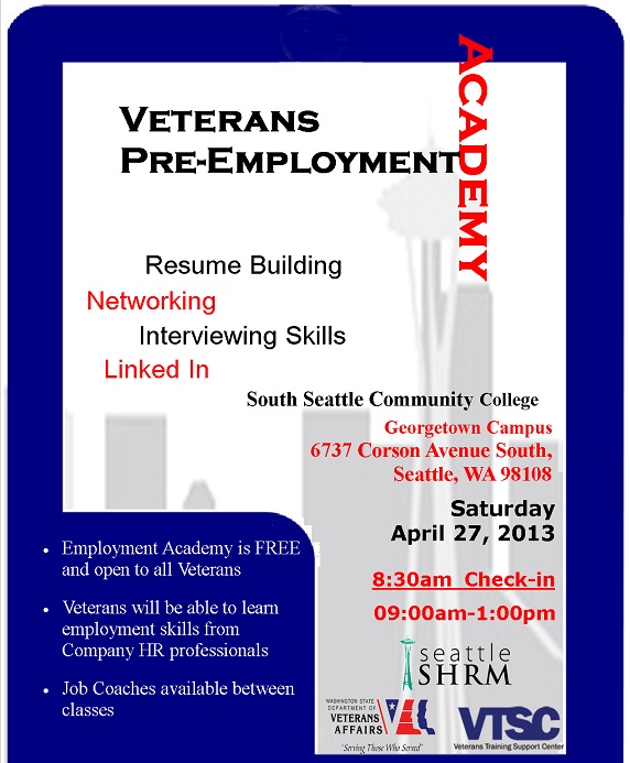 Veteran Pre-Employment Academy 4/27 9am-1pm